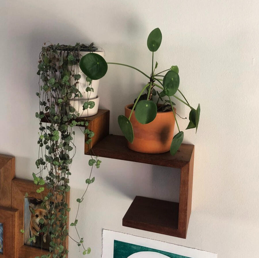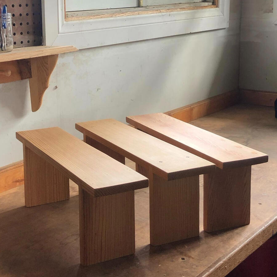 White Oak corner shelves made of repurposed leftover box beam cut-offs from a house build in Montecito, California.
