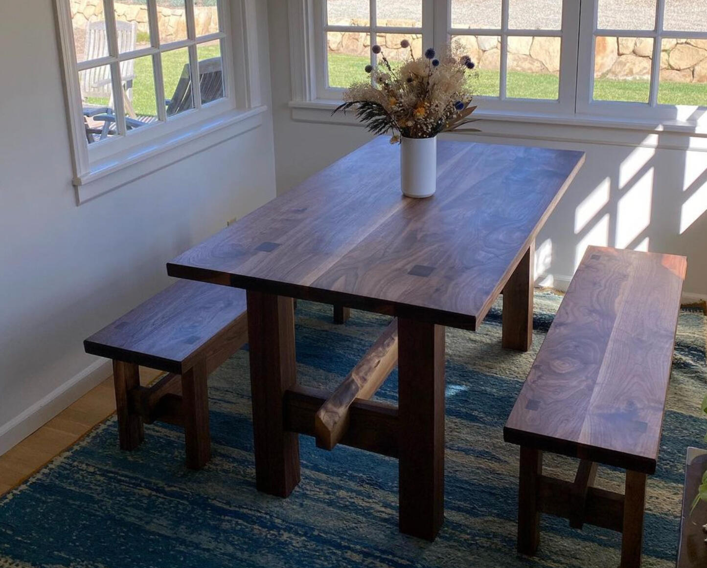 Black Walnut through-tennon table and benches. Carpinteria, California.